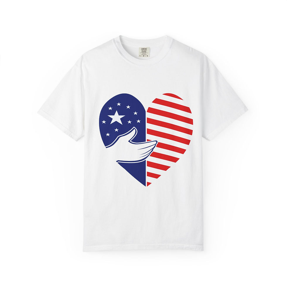 Patriotic Heart T-shirt - Unisex, Garment-Dyed,Casual Wear, Heart Design